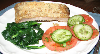 We buy parsnips pretty regularly (although the woman working the check-out lane in the grocery store had to ask me what they were before she could ring them up) (and she asked me what the fennel bulb was, too), but we've never had them prepared like this: drizzled in olive oil and fresh lemon juice, like the fennel, but also sprinkled with cumin before baking. While they were in the oven, Hillary noted that they smelled like "Mexican beans" (refried beans), but Viestad writes that "cumin and its cousin, caraway, have been common in Scandinavia since the 13th century." Well, there ya go.